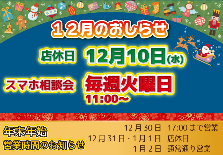 【店休日のお知らせ】12月10日(水)