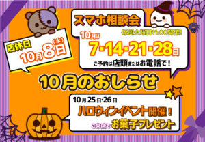 【au日向学院前】🎃10月のお知らせ🎃
