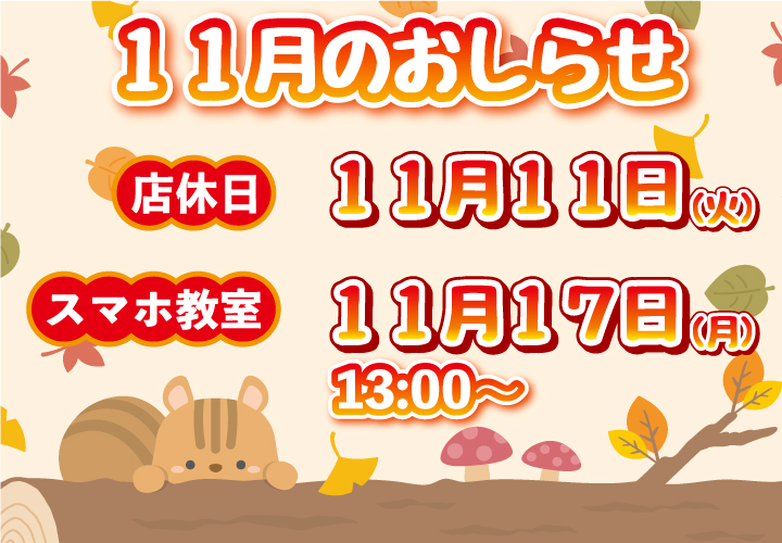 【au都北】11月のお知らせ🍁