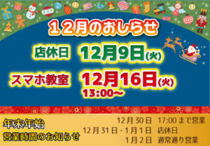 【au都北】🎅12月のお知らせ🎄